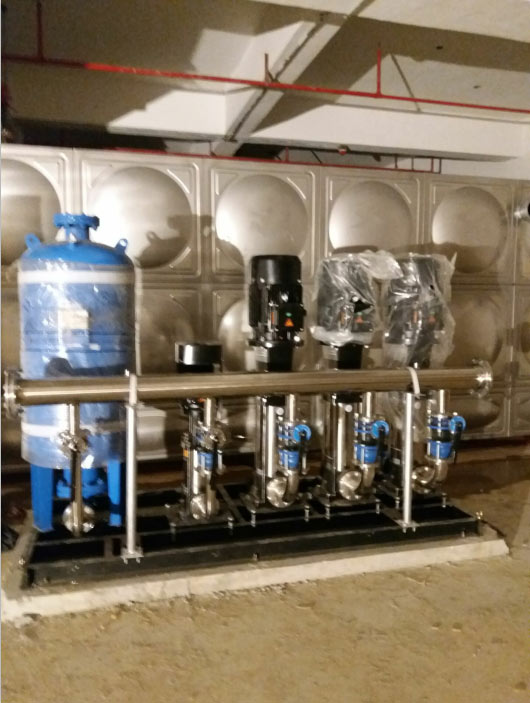現(xiàn)場變頻供水設(shè)備與不銹鋼水箱